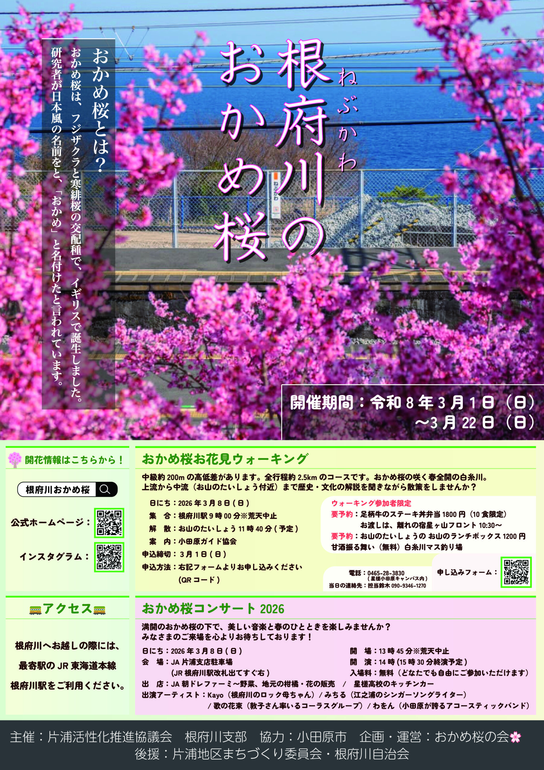 協力:小田原市 企画・運営:おかめ桜の会🌸 後援:片浦地区まちづくり委員会・根府川自治会